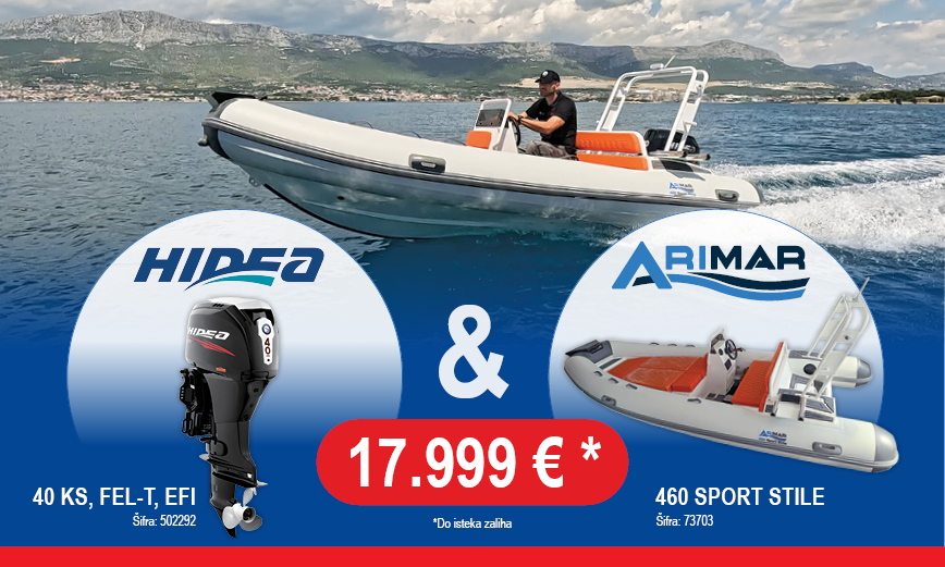 Brzi pogled Gumeni čamac ARIMAR Roll 240 s vanbrodskim motorom HIDEA HDF 2,5 KS 1.108,00 € Dodaj u košaricu