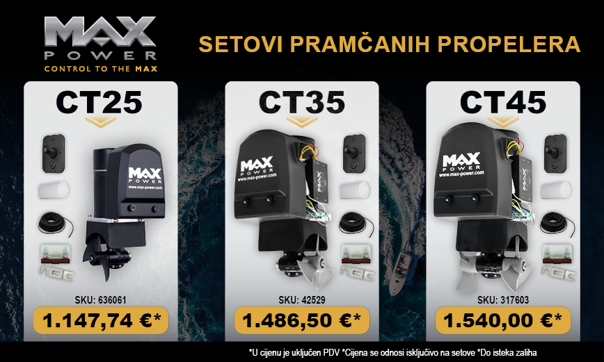 Brzi pogled MAX POWER CT45 – set tunnel thruster,12V– 3.23(kw)/4.3(hp)–45kgf – D125mm – Duo 1.540,00 € Dodaj u košaricu