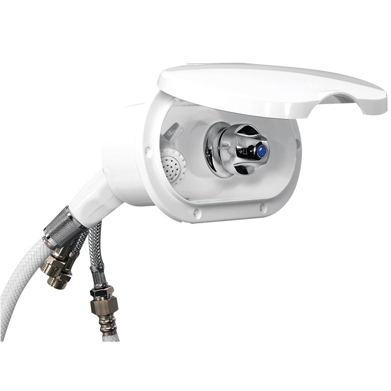 Posebno dizajnirano da kombinira dvije funkcije u jednom kućištu, omogućava uštedu prostora i jednostavan pristup. Uz olakštan proces ugradnje, dizajnirano je za što veću izdržljivost i sigurnost. Dostupno u bijeloj ili krom boji, ovo kućište se može ugraditi u bilo koju palubu ili u krmeno zrcalo na način se ne naruši postojeći izgled plovila. Dolazi sa šablonom za rezanje.