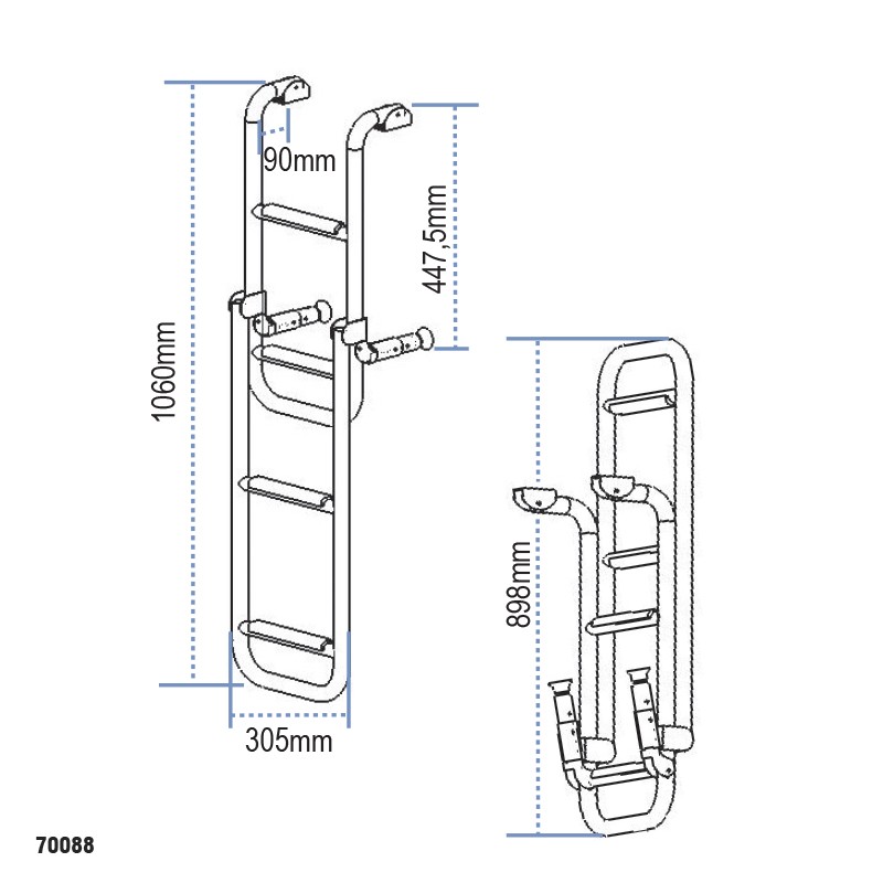Sklopive brodske ljestve od nehrđajućeg čelika Inox 316 namijenjene su sigurnom i jednostavnom pristupu plovilu. Zahvaljujući sklopivoj konstrukciji, ljestve se lako spremaju kada nisu u uporabi, čime se štedi prostor na brodu.
