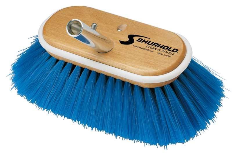 Četka je izrađena prema Shurhold profesionalnim standardima kvalitete te ima čvrsti drveni blok s gumenim zaštitnim rubom koji sprječava oštećenja i ogrebotine tijekom čišćenja. Kompatibilna je sa svim Shurhold teleskopskim drškama.