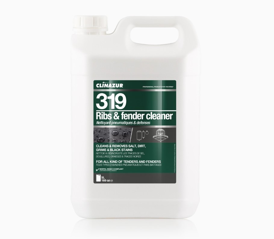 CLINAZUR 319 Ribs & Fender Cleaner je sredstvo namijenjeno čišćenju tendera, gumenjaka i bokobrana. Njegova formulacija omogućuje uklanjanje soli, prljavštine, masnih tragova i crnih linija bez oštećenja PVC materijala.