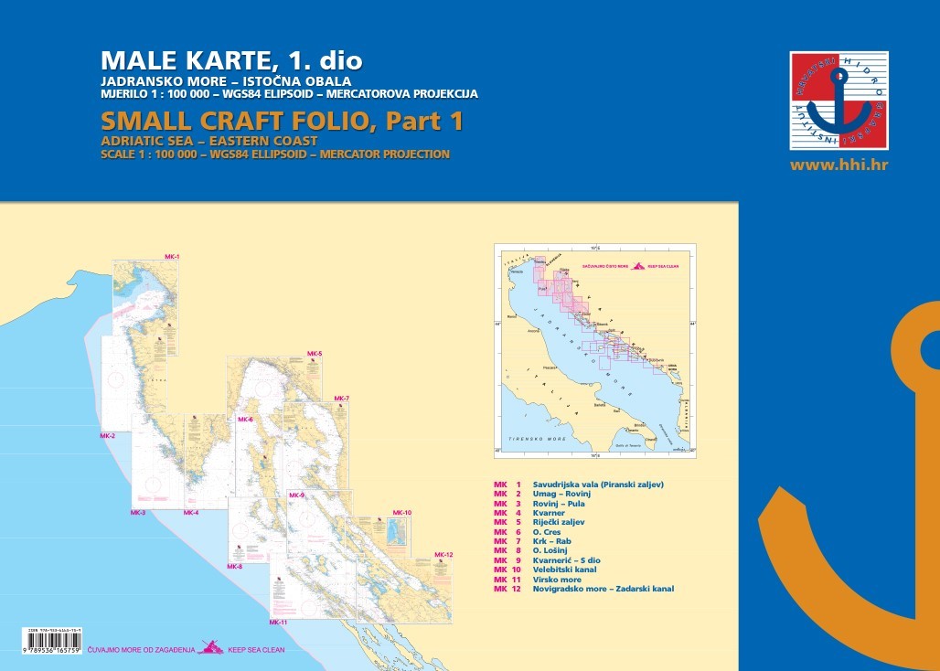 Small nautical charts – Part 1 (MK-I) issued by the Hydrographic Institute are official navigation charts designed for safe coastal navigation along the northern eastern Adriatic Sea. They cover the area from the Gulf of Trieste to the Zadar region.