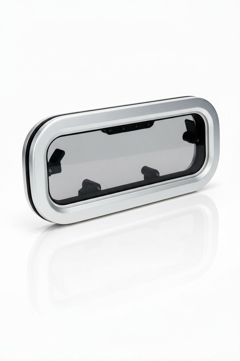 Aluminium side window with tinted safety glass, designed for hull installation. Provides natural light, ventilation and long-lasting durability in marine environments.