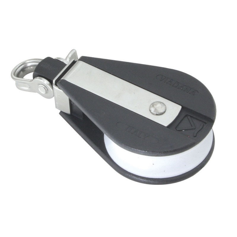 Single ball bearing block designed for smooth rope handling with minimal friction and flexible mounting options.