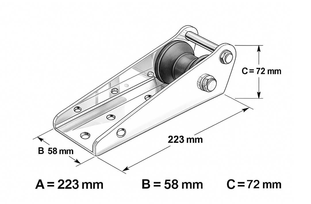 AISI 304 Anchor Roller, 223× 58×72 mm