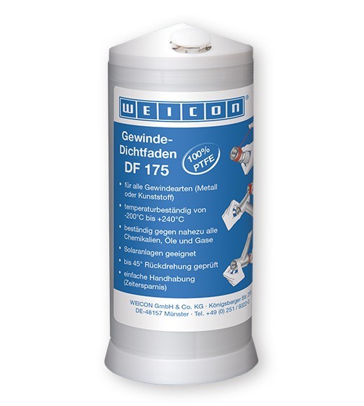 WEICON DF 175 is a patented 100% PTFE sealing cord designed for permanent and reliable sealing of almost all metal and plastic threaded connections.