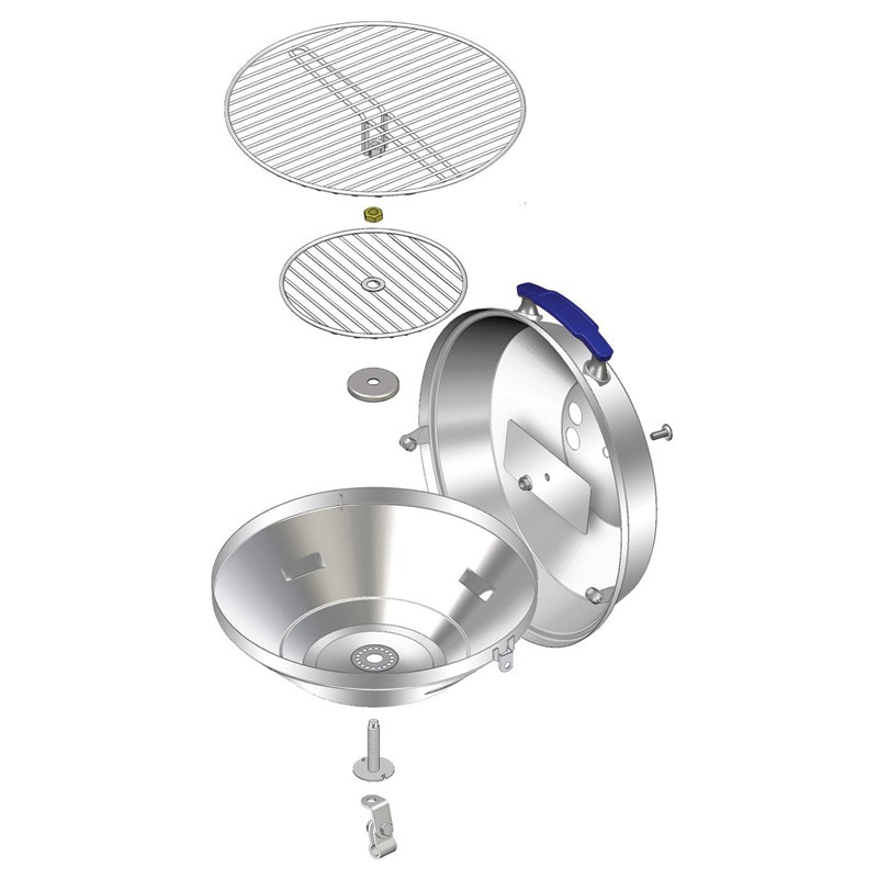 The Marine Kettle allows faster cooking of larger quantities of food on a smaller surface compared to traditional grills. After grilling, the air supply can be easily shut off to extinguish the charcoal and preserve it for the next use.