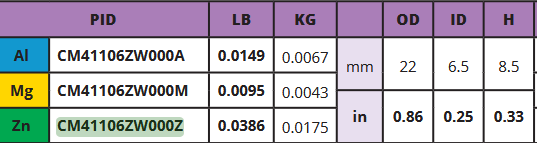 | Material | Zinc (Zn) |