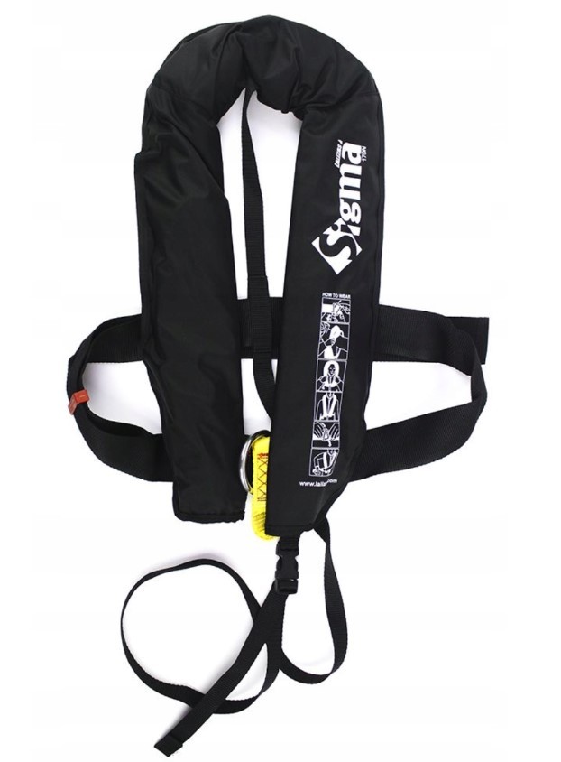 LALIZAS Sigma Inflatable Lifejacket, Auto, 170N, with D-ring & Crotch Strap, Black, Adult