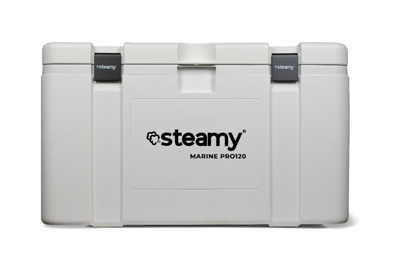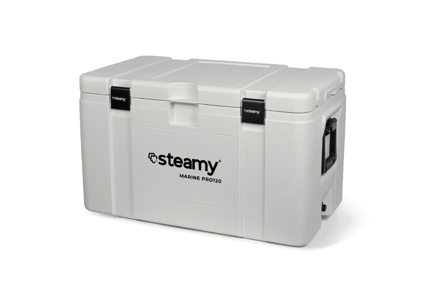 Steamy Marine Pro 120 Cooler (120 L) – Heavy-Duty Marine Cool Box is a professional-grade marine cooler with 50mm insulation and ice retention up to 6 days. Its 120-liter capacity makes it ideal for extended marine and outdoor use.