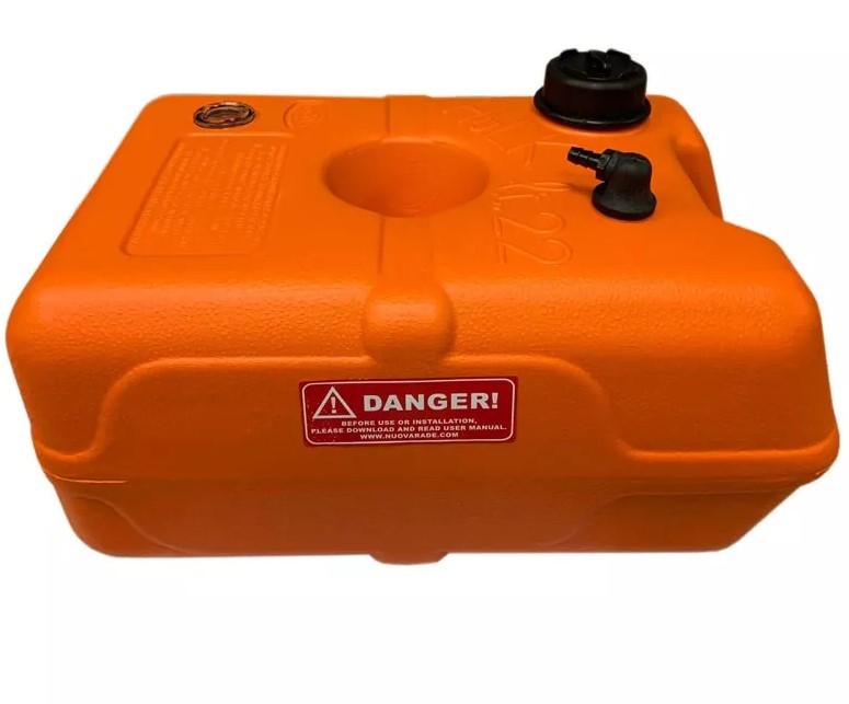 The 22L portable fuel tank is made from durable, corrosion-resistant rotationally moulded plastic, ensuring safe and reliable marine fuel storage. Featuring a vented cap and integrated fuel gauge, it allows easy monitoring of fuel levels. Its compact dimensions and robust construction make it ideal for outboard engine applications and convenient transportation.