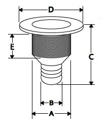 Thru-Hull Easy Mount Threaded with Hose Barb