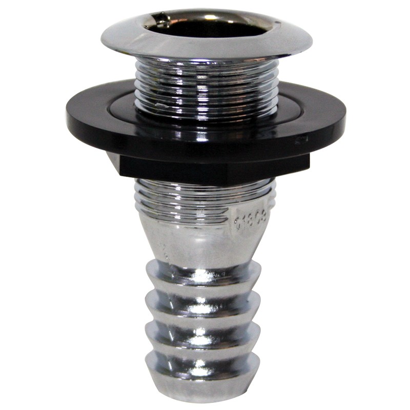 Thru-Hull with Flush Flange and Hose Barb, Chromed